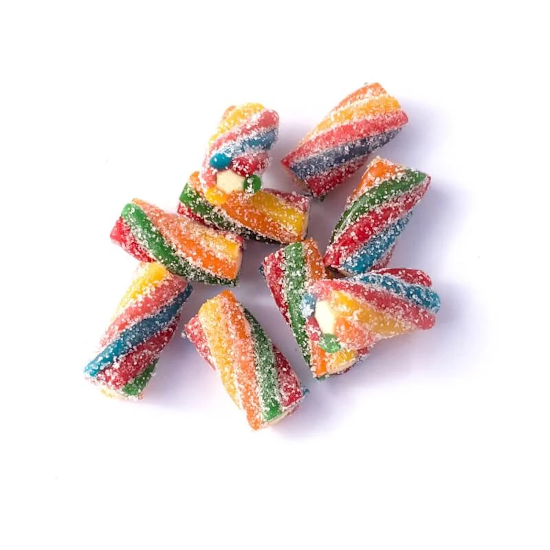 Introducing Fizzy Pineapple Braids, a delightful treat that combines the sweetness of pineapple with a tangy sour sugar coating. These rainbow-coloured twists are filled with a delicious pineapple-flavoured sherbet cream that will surely satisfy your sweet tooth.