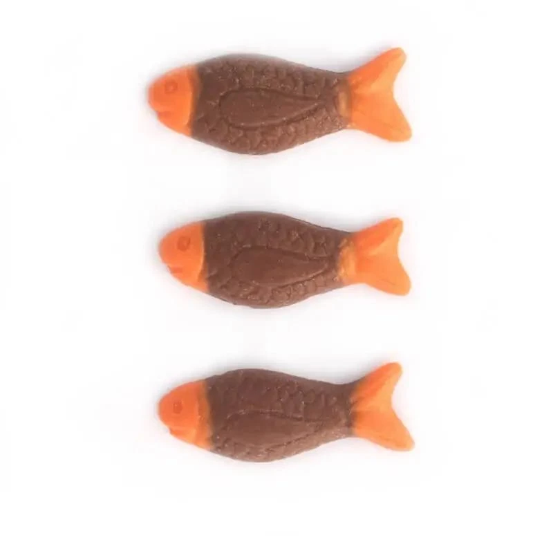 Orange flavoured chocolate fish lollies that are made in New Zealand by Mayceys Confectionery.